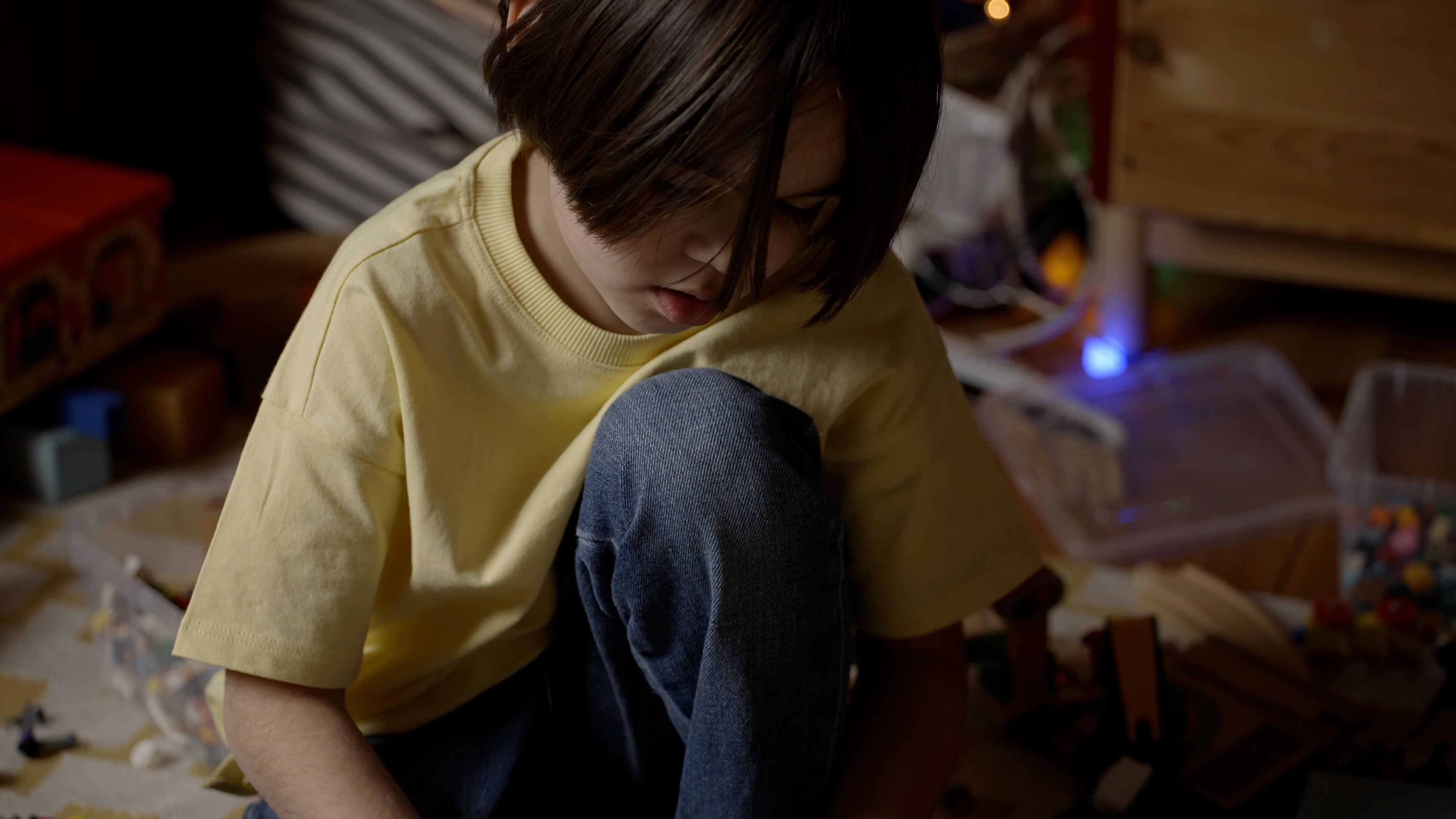 We see a young boy playing intently with his toys on the floor of his room. He rolls a miniature car between his fingers, then lets it down slowly as if it was falling from the sky. The rhythm picks up while the boy is mimicking sounds of explosions. We deduce that, with all his might, he shatters his toy world to pieces. He is simultaneously creator and destroyer of worlds. (Stefan Ewald)