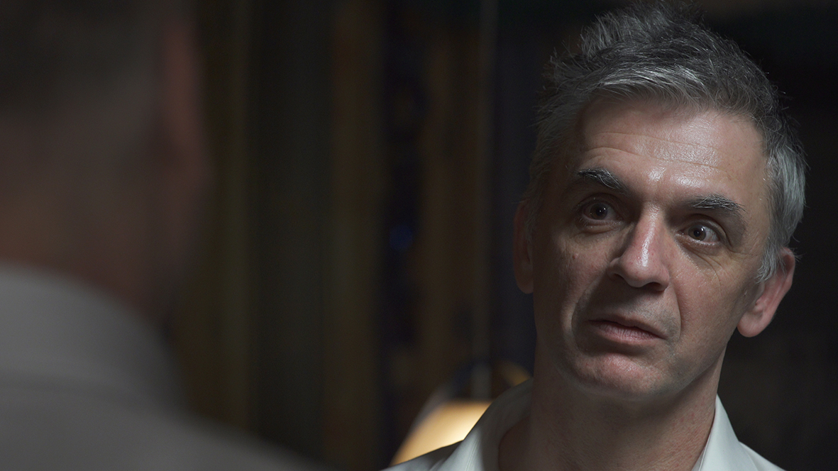 Three grey-haired business executives find themselves in a dusty German basement party room. But the party is over. They aren't friends. Strange sounds penetrate the walls. A tiny helicopter circles around their heads. A large flat-screen TV shows mysterious sequences. In the underground, shelter and prison at the same time, gestures and power relations of the business world do no longer count. They are condemned to stay where fire spits its flames into their helpless minds.